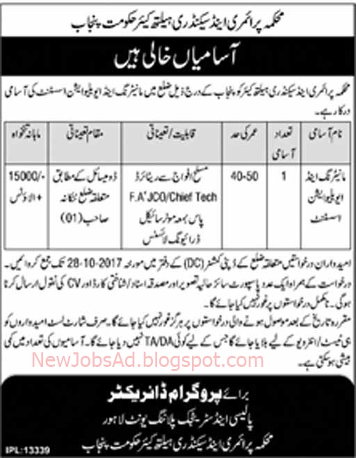 Jobs in Primary And Secondary Healthcare Department of Punjab - 12 Oct 2017 in Dunya Newspaper